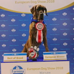 There are Great Danes born in my kennel which became International Champions, Multi Champions, Champions of different countries, Club Champions, Euddc Winner-BIS, European Winner, European vice Winner, Word vice Winner, European Veteran Winner, Word Winner. These awards made me extremely happy and motivated to breed Great Dane seeing how strong, beautiful they are and at the same moment enjoy their excellent character and temperament. There are some Great Dane from my kennel which live in various other countries of Europe.